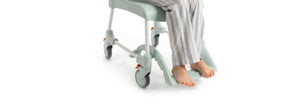 The foot support on Clean shower commode chair is unique and can be pushed under the seat when not in use. The soft curved surface provides good comfort for the feet, which are also protected by the foot support's side protection.