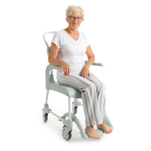 Etac Clean shower commode chair is extremely easy to operate, thanks to the width of the push handle. The clever design can be seen throughout the entire chair. The upright handle ensures that Clean is a perfect fit, even over wall-mounted toilets, and the chair is open at the back to facilitate access.